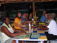 Members and friends of the St. Kitts and Nevis Travel Forums at www.discover-stkitts-nevis-beaches.com and myislands.myeyez.net have fun meeting up with each other at Mr X Shiggidy Shack on South Frigate Bay Beach in St. Kitts on October 25, 2005.